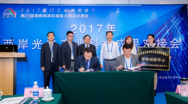 2017年4月13日,乾照光電總經(jīng)理蔡海防先生出席了由廈門市科學(xué)技術(shù)局主辦,福建省光電行業(yè)協(xié)會、廈門市光電子行業(yè)協(xié)會等多家單位聯(lián)合承辦的“2017年兩岸光電產(chǎn)業(yè)科技成果對接會”,共同見證 “半導(dǎo)體光電材料及其高效轉(zhuǎn)換器件協(xié)同創(chuàng)新中心廈門乾照光電股份有限公司分平臺”的揭牌儀式,并代表公司與廈門大學(xué)簽署合作協(xié)議。此分平臺的設(shè)立,有利于提高公司與廈門大學(xué)之間的協(xié)同創(chuàng)新能力,不斷增強企業(yè)的技術(shù)創(chuàng)新能力,促進企業(yè)持續(xù)高速發(fā)展。
