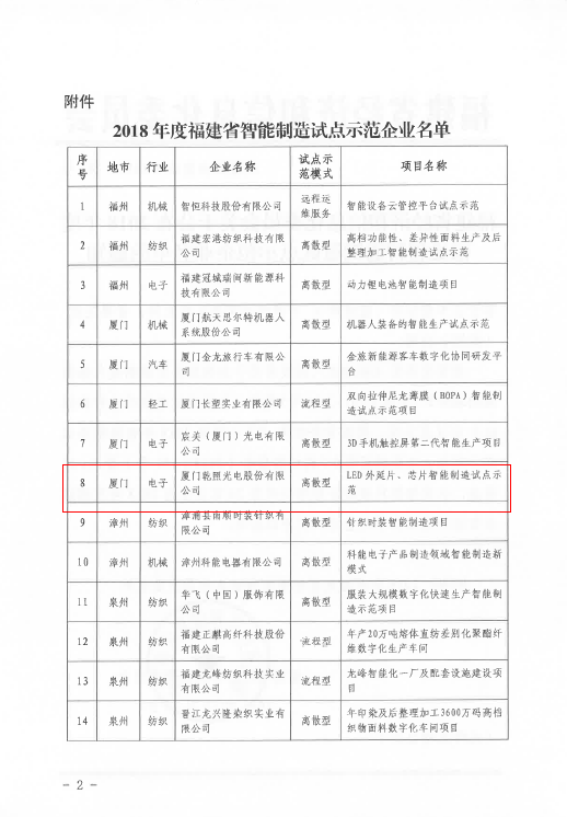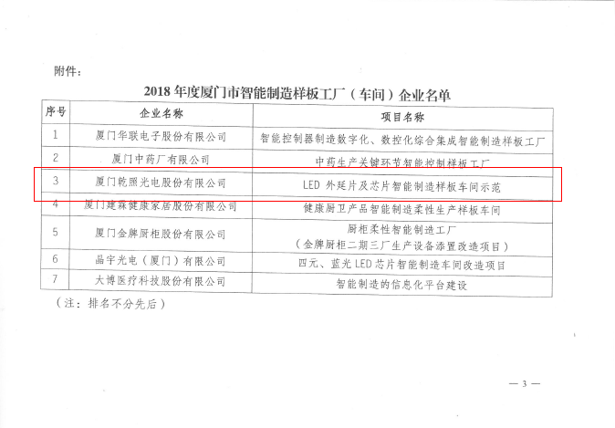 2018年,乾照光電在紅黃光領(lǐng)域,堅(jiān)持“擴(kuò)產(chǎn)+擴(kuò)充高端產(chǎn)品”的發(fā)展戰(zhàn)略;在藍(lán)綠光領(lǐng)域,實(shí)施“全面擴(kuò)產(chǎn),規(guī)模跟隨”的布局戰(zhàn)略,爭取做行業(yè)龍頭。通過自身努力獲得了行業(yè)的廣泛認(rèn)可。2018年,乾照光電的LED外延片及芯片智能制造項(xiàng)目更是榮獲國家工信部智能制造試點(diǎn)示范項(xiàng)目、福建省經(jīng)信委智能制造試點(diǎn)示范項(xiàng)目、廈門市智能制造樣板工廠(車間)示范等一系列榮譽(yù)。