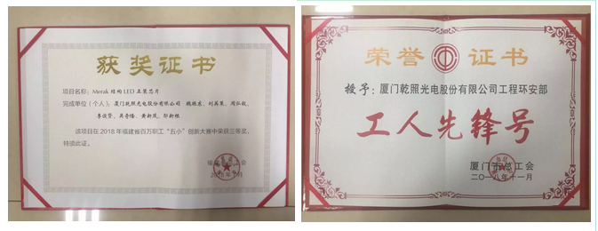2018年,乾照光電工會也得到了市總工會和區(qū)總工會的肯定與支持。公司研發(fā)的Merak結(jié)構(gòu)LED正裝芯片項目在2018年福建省百萬職工“五小”創(chuàng)新大賽中榮獲三等獎。公司工程環(huán)安部榮獲2018年廈門市“工人先鋒號”榮譽稱號。2018年10月,公司還承辦了“改革開放40周年禮贊—中國夢?勞動美”慰問演出暨“2019廈門職工春晚”翔安區(qū)節(jié)目海選專場活動。
