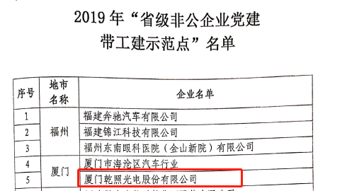 榮獲2019年“福建省非公企業(yè)黨建帶工建示范點”