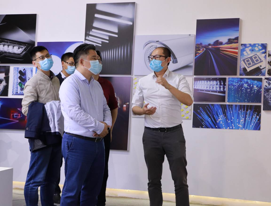 在公司展廳,調(diào)研組一行認(rèn)真聽取了陳文戎對(duì)江西乾照光電廠區(qū)整體規(guī)劃、項(xiàng)目建設(shè)進(jìn)度、產(chǎn)品技術(shù)創(chuàng)新及應(yīng)用領(lǐng)域的介紹,詳細(xì)了解了公司產(chǎn)品升級(jí)、技術(shù)創(chuàng)新及未來(lái)顯示技術(shù)規(guī)劃等情況。
