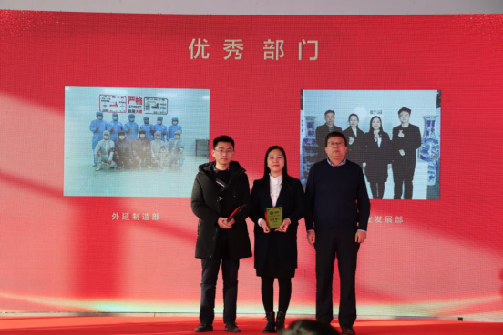 總結(jié)報(bào)告后,公司對(duì)2020年工作中表現(xiàn)突出的個(gè)人和團(tuán)隊(duì)進(jìn)行了表彰。此次表彰共設(shè)置了最佳新人獎(jiǎng)、基層骨干獎(jiǎng),技術(shù)精英獎(jiǎng)、管理卓越獎(jiǎng)、優(yōu)秀部門獎(jiǎng)、優(yōu)秀班組獎(jiǎng)、科技進(jìn)步獎(jiǎng)、十年員工、安全評(píng)優(yōu)、黨支部優(yōu)秀黨員獎(jiǎng)、“乾照十佳人物”等多類獎(jiǎng)項(xiàng)。金章育為十佳人物一一頒獎(jiǎng),蔡海防為十年員工頒發(fā)十年紀(jì)念金幣。