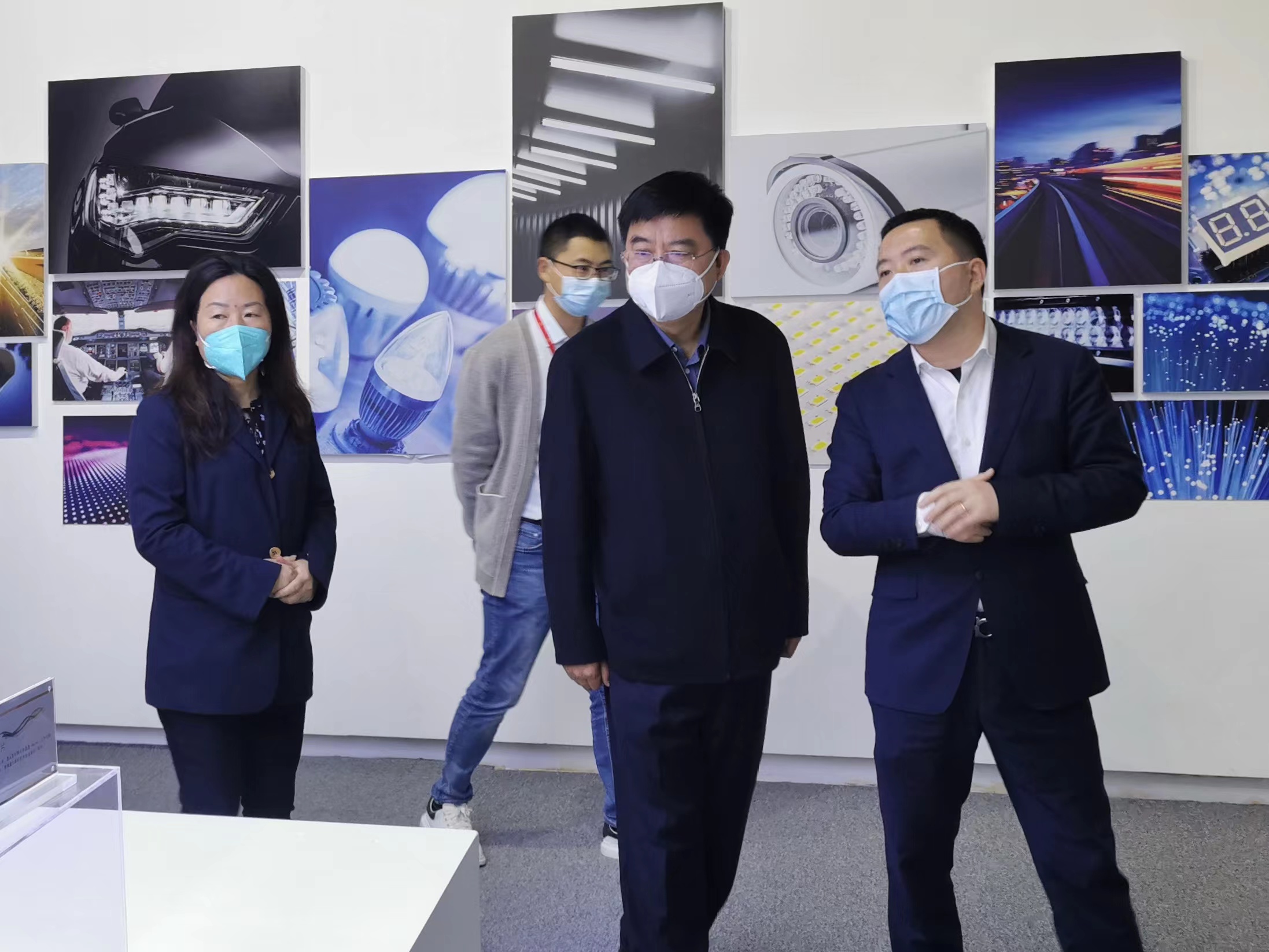 在公司展廳,李書記一行聽取了江西乾照光電總經(jīng)理劉兆關(guān)于企業(yè)生產(chǎn)經(jīng)營現(xiàn)狀、產(chǎn)品應用領域及未來發(fā)展規(guī)劃的匯報,并詳細了解了公司目前的生產(chǎn)情況和公司疫情防控措施的落實情況。他表示,在疫情最嚴峻的形勢下,江西乾照迅速響應政府防疫政策,配合政府做好防疫“一企一策”,全面實施封控管理措施,鼓勵員工駐廠辦公,廠區(qū)內(nèi)嚴格實施“不進不出”,正常運營生產(chǎn),四月份取得了新的成績,給予了充分肯定。他指出,隨著疫情防控形勢好轉(zhuǎn),企業(yè)要在嚴防疫情的基礎上,堅守安全生產(chǎn)底線,嚴格落實疫情防控措施,確保安全生產(chǎn)有序推行。他強調(diào),企業(yè)要堅持生產(chǎn)、防疫兩手抓兩不誤,加大生產(chǎn)力度,推進企業(yè)平穩(wěn)快速發(fā)展,大力引進上下游優(yōu)勢企業(yè),進一步補鏈延鏈強鏈。