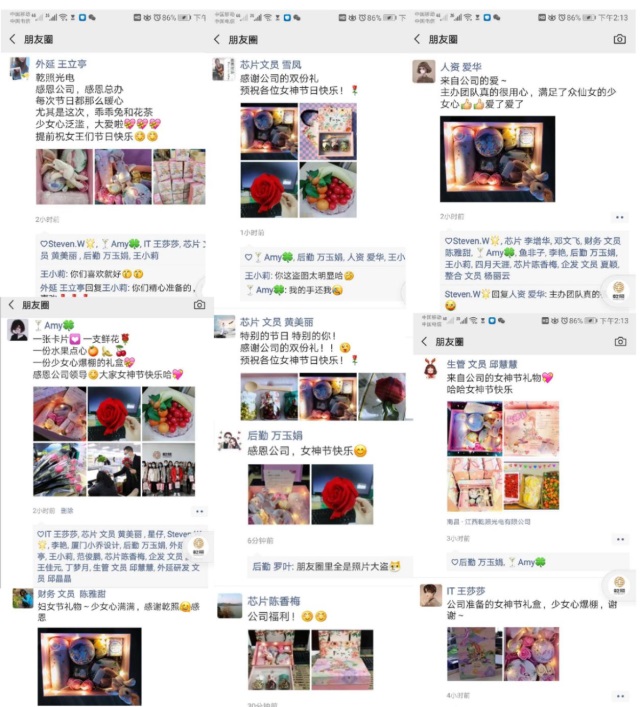 在這個特別的日子里,江西乾照光電用賀卡、鮮花、伴手禮和水果點心打包一份份甜蜜,表達公司對廣大女職工的深切關愛。少女心爆棚的禮盒更是贏得了全體女同胞的芳心,朋友圈瞬間刷屏夸贊公司福利。